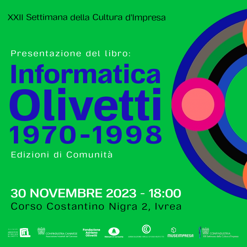 Tra i vari appuntamenti in programma, l’Associazione Archivio Storico Olivetti, in collaborazione con Confindustria Canavese, propone la presentazione del libro Informatica Olivetti. 1970-1998 di Gianfranco Casaglia. Attraverso documenti originali, carte personali e documenti forniti da altri dirigenti di quegli anni, l’autore realizza una prima ricostruzione della storia dell’informatica italiana. Il libro attraversa la storia della società di Ivrea negli anni chiave che dallo sviluppo del settore elettronico portarono, con l’arrivo di Carlo De Benedetti, al ridimensionamento di quest’ultima a favore dello sviluppo della telefonia mobile.Â