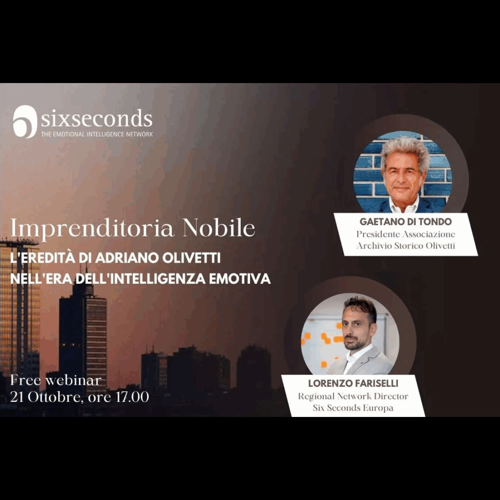Durante questo webinar, Lorenzo Fariselli, direttore di Six Seconds Europa, dialogherà con Gaetano Di Tondo, Presidente dell’Associazione Archivio Storico Olivetti, per esplorare come l’Intelligenza Emotiva possa diventare oggi la chiave per costruire un’imprenditoria davvero nobile.